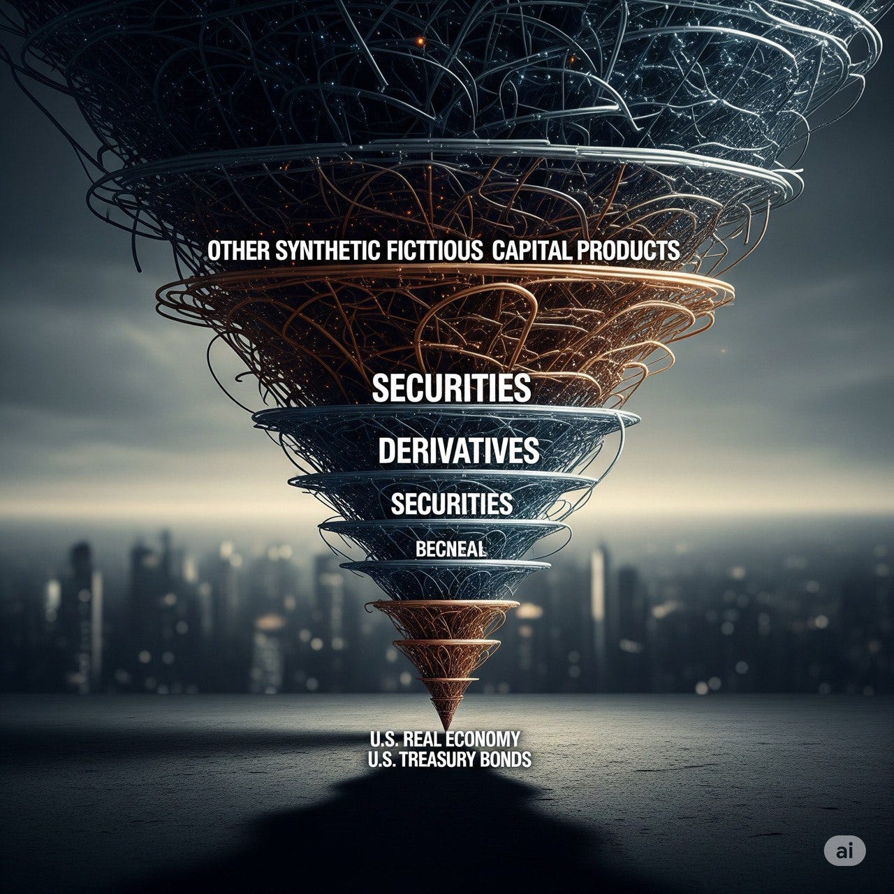 Fictitious capital absorbs surplus liquidity, distorting the profitability of productive use value sectors and necessitating larger and riskier credit injections into the systems of circulation writ large.